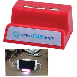 Tùy chỉnh bán buôn ánh sáng lên logo nhựa điện thoại di động đứng chủ với 3 USB HUB